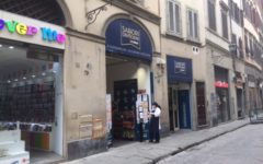 SAN LORENZO – In Piazza San Lorenzo nessuno, in via San Lorenzo aperti molti negozi, fra i quali lo shop della Fiorentina (foto sopra).