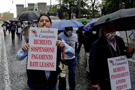 NAPOLI – Una categoria fantasma, dimenticata e abbandonata: sono i lavoratori dei bus turistici con conducente, in protesta davanti alla sede della Prefettura, a Napoli, per chiedere di essere ascoltati. E’ il primo ‘corteo’ post lockdown che attraversa parte della città: con i loro autobus, circa una dozzina, hanno raggiunto Largo di castello e, a colpi di clacson hanno sfilato intorno alla fontana in piazza Trieste e Trento, prima di dirigersi verso la Stazione marittima. I lavoratori, otre 200, hanno proseguito a piedi, da piazza Municipio fino a piazza del Plebiscito, davanti alla sede della Prefettura, rispettando le misure di sicurezza imposte dall’emergenza sanitaria da Covid-19, indossando le mascherine e, con loro, hanno striscioni: “Turismo petrolio d’Italia: dimenticati”, “Cassa integrazione fantasma”, “Bloccati dalle banche”. “Siamo abbandonati e dimenticati anche dall’ultimo decreto – spiega Alberino Pennino, presidente di Assobus Campania – avevamo chiesto la possibilità di accedere a un fondo perduto, come in Germania e Francia, ma abbiamo avuto solo briciole”.