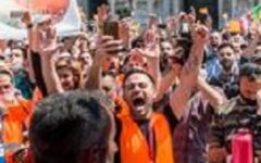MILANO – Qualche centinaio di persone si sono radunate in Piazza Duomo, a Milano, per una manifestazione dei ‘gilet arancioni‘, un movimento di protesta – guidato dall’ex generale dei carabinieri Antonio Pappalardo – che chiede, tra l’altro, la fine del governo Conte, il ritorno alla ‘lira italica’ e un ‘governo votato dal popolo’. Nel corso della manifestazione, la maggioranza dei partecipanti non ha rispettato le distanze di sicurezza per l’emergenza coronavirus e si sono verificati di fatto alcuni assembramenti anche attorno ai rappresentanti del movimento che parlavano al microfono, dopo aver steso striscioni a terra. Alcuni dei partecipanti della manifestazione a Milano tenevano anche le mascherine abbassate (ricordiamo che in Lombardia l’uso della mascherina è obbligatorio anche all’aperto) mentre urlavano cori di protesta, tra cui ‘libertà’ e ‘dignità’.