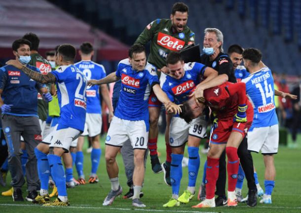 Le proiezioni di Mertens (fresco di rinnovo contrattuale) e Insigne hanno creato grattacapi alla difesa bianconera e Buffon ha dovuto salvare in due occasioni. Il Napoli ha fatto bene anche nella seconda parte della gara. I cambi dei due allenatori hanno offerto altre prospettive, ma il risultato non è mutato, anche se Elmas, nel recupero, ha colpito il secondo palo (l’ennesimo degli azzurri) della serata. Poi i rigori e il giusto trionfo del Napoli. Nel giorno del mezzo secolo della famosa semifinale dell’Azteca vinta dall’Italia sulla Germania (4-3), a Roma il Napoli ha fatto un brutto scherzo alla Juventus, sovvertendo i pronostici e portando meritatamente a casa la sesta Coppa Italia, lasciando la Juve a quota tredici.