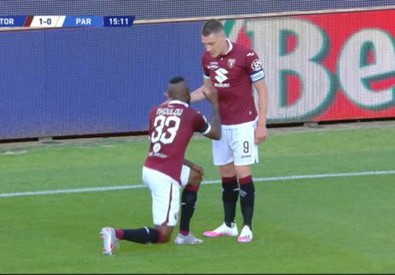 Torino e Parma hanno pareggiato 1-1 in uno dei recuperi della 25/a giornata del campionato di serie A che è ripartito oggi dopo 103 giorni di stop per l’emergenza coronavirus. E’ stato del Torino il primo gol della serie A alla ripresa dopo lo stop per l’emergenza coronavirus. Lo ha realizzato contro il Parma, recupero della 25esima giornata di campionato, il granata Nkoulou, al 15′ del primo tempo, con un colpo di testa sugli sviluppi di un calcio d’angolo. In ginocchio con il pugno stretto per ricordare George Floyd: così il giocatore del ha ricordato l’afroamericano morto a Minneapolis circa un mese fa. L’autore del gol N’Koulou dopo essere stato festeggiato dai compagni si è inginocchiato. Il Torino ha perso l’occasione di vincere con il rigore che Belotti si è fatto parare da Sepe. Il Parma ha trovato il gol del pareggio con Kucka.