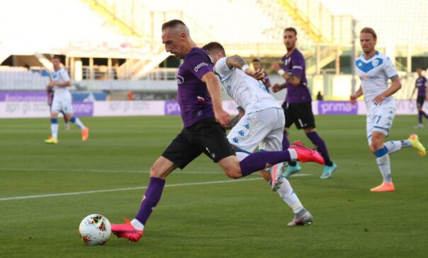 RIBERY – Come avevo auspicato nell’articolo di presentazione a Fiorentina-Brescia, Beppe Iachini mostra coraggio e schiera da subito Ribery. Tridente con Vlahovic e Chiesa. O quasi. A sopresa resta fuori Milenkovic. Che però siede in panchina. Insieme a Pezzella, al centro della difesa, c’è Ceccherini. Ai lati Caceres e Dalbert. In mediana Duncan, Pulgar e Castrovilli. Brescia prudente con un 4-3-1-2. Minuto di raccoglimento per le vittime del Covid. Calcio d’inizio per a Fiorentina. Atmosfera surreale, come sempre in questi casi. Le voci dei giocatori, che si chiamano e si sollecitano, rompono il silenzio. Ribery è controllato a vista. Spesso va su di lui anche Tonali, che lo segue soprattutto quando Franck arretra. Ritmo rallentato, come si era visto nelle partite precedenti, perfino in quelle, decisive, di Copp Italia.