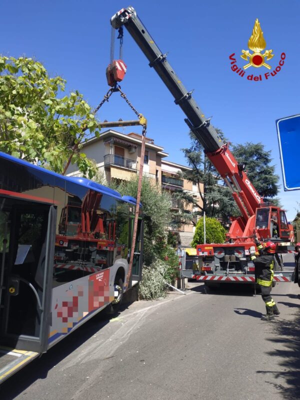 Il bus dell’Ataf sbandato in via del Guarlone, rimosso dai Vigili del fuoco