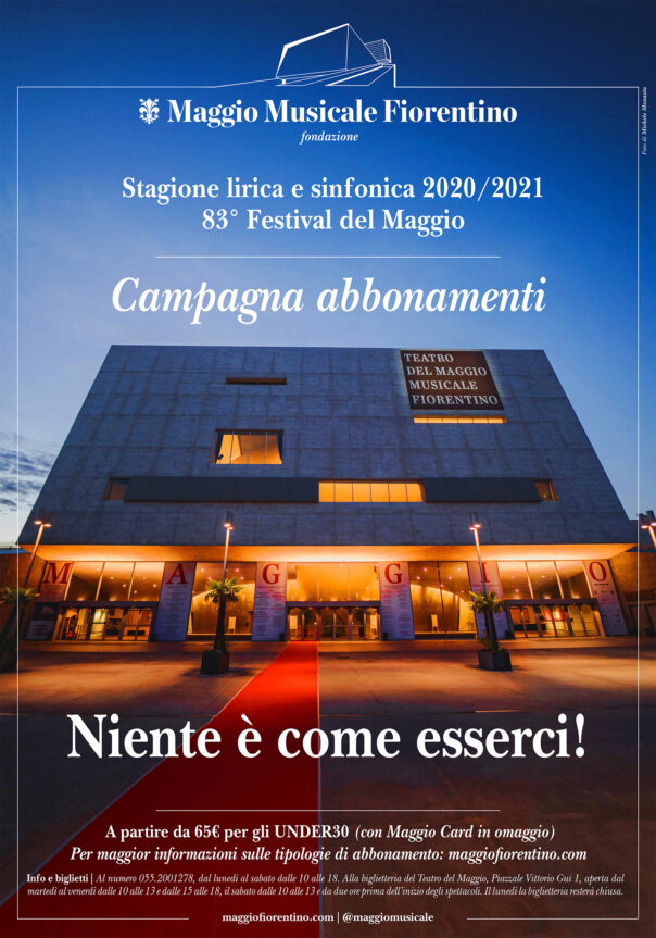 L’invito che accompagna il lancio della campagna è «Niente è come esserci!», con lampante riferimento agli spettacoli online che hanno reso meno insopportabile il lockdown: ma ora questo è finito ed è l’ora di tornare a teatro, anche per aiutarne la sopravvivenza. Ceto, abbonarsi con una qualsiasi formula è il modo più energico per sostenere il Maggio.