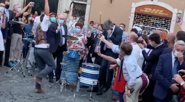 ROMA – Intermezzo musicale, nel tardo pomeriggio di ieri 29 luglio, per alcuni componenti del governo. Il premier Giuseppe Conte, le ministre Teresa Bellanova ed Elena Bonetti ed il ministro dell’Economia Roberto Gualtieri si sono esibiti, in piazza Montecitorio, insieme al presidente della Camera Roberto Fico, in una rullata di tamburi assieme agli organizzatori dell’evento con le associazioni PizzAut, Il Tortellante e Banda Rulli Frulli. Si tratta di realta’ impegnate per l’integrazione sociale e lavorativa di ragazzi con disabilita’ e con autismo, che sostavano davanti alla Camera dei deputati per cucinare e offrire pizza e tortellini preparati dai loro giovani.