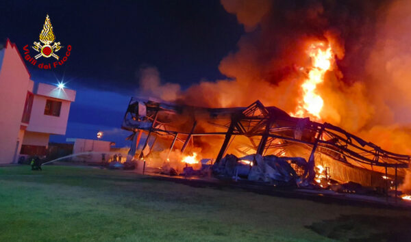 Sul posto sono intervenuti i vigili del fuoco che hanno circoscritto l’area interessata dal rogo. Al momento le fiamme sono sotto controllo ed è in corso la fase di spegnimento di focolai che, spiegano i pompieri, potrebbe durare diverse ore. In base alle prime informazioni, l’incendio, le cui cause sono in corso di accertamento, avrebbe interessato la parte i locali dell’azienda adibiti alla produzione. Ingenti i danni alla struttura. Nessuna persona è rimasta ferita. Sul posto anche la polizia di Stato.