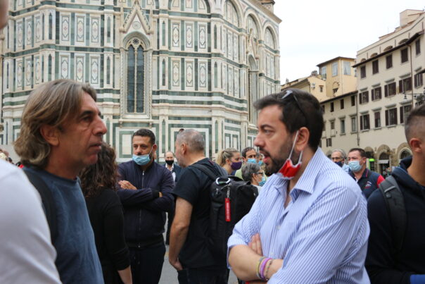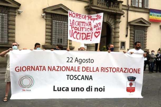 Il gruppo Ristoratori Toscana ha dato luogo oggi a un presidio in piazza Duomo a Firenze, davanti alla sede della presidenza della Regione Toscana, per ricordare il collega suicida, sensibilizzare nuovamente le istituzioni sulle difficoltà delle imprese di settore, e denunciare l’insufficienza delle misure su supporto al comparto della ristorazione. Una delegazione del gruppo ha incontrato l’assessore regionale al commercio Stefano Ciuoffo, mentre l’assessore al commercio del Comune di Firenze, Federico Gianassi, ha presenziato al sit-in dei ristoratori. Hanno incontrato i manifestanti anche il candidato del centrosinistra alle elezioni regionali, Eugenio Giani, e la candidata del centrodestra Susanna Ceccardi. «Ci sentiamo abbandonati dalle istituzioni – ha affermato Pasquale Naccari, portavoce del gruppo Ristoratori Toscana -: da mesi denunciamo le difficoltà che ci ritroviamo a vivere tutti quotidianamente, fino ad oggi nessuno ci ha ascoltati. Chiediamo che questi drammi non cadano nel dimenticatoio perché quanto successo non accada mai più. Perché a noi sembra che dopo pochi giorni le istituzioni si siano già dimenticate di questa tragedia».
