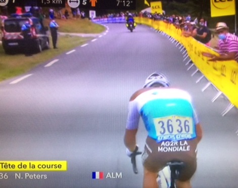 LOUDENVIELLE – Il francese Nans Peters (Agr La Mondiale) ha vinto per distacco l’ottava tappa del Tour de France, la Cazères sur Garonne-Loudenvielle, di 141 chilometri. Sul traguardo della prima frazione pirenaica della corsa, il gruppo della maglia con quasi 7′ di ritardo. Ma il britannico Adam Yates ha conservato la maglia gialla di leader della classifica generale del Tour de France, al termine dell’ottava tappa, la Cazères sur Garonne-Loudenvielle, di 141 chilometri, vinta per distacco dal francese Nans Peters. Yates è arrivato con il gruppo degli uomini di classifica con un ritardo di 6’39”, mantenendo un vantaggio di 3” su Roglic e di 9” su Martin.