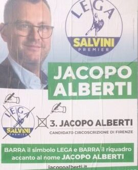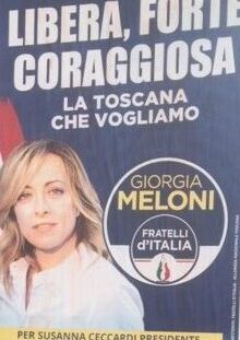 C’erano solo manifesti della compagine di centrodestra, quella che sostiene l’elezione di Susanna Ceccardi a presidente della Toscana. Evidentemente i compagni del Pd o si sentono molto sicuri della vittoria di Eugenio Giani o sono in ritardo nell’organizzazione della propaganda nelle strade. Che differenza con i solerti galoppini del PCI di un tempo.