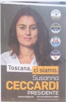 FIRENZE – Susanna Ceccardi  ha inviato un messaggio a Eugenio Giani per congratularsi della vittoria. Lo si apprende dall’ufficio stampa della candidata per il centrodestra alla presidenza della Regione Toscana che dovrebbe arrivare al comitato elettorale presso l’Hotel Villa Medici di Firenze  per commentare i risultati