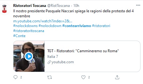 FIRENZE – Una manifestazione in programma il 4 novembre per chiedere al governo di prendere in considerazione la ristporazione, uno dei settori più sacrificati da Conte e compagni. Da Firenze a Roma per chiedere di tenere aperti i loro locali, annuncia Repubblica. Sarà una protesta pacifica quella dei Ristoratori Toscana che il 4 novembre, il giorno in cui ricorre l’anniversario dell’alluvione dell’Arno del 1966, dietro l’hashtag #contearriviamo, diventato anche lo slogan dell’iniziativa, inizieranno il Cammino degli inessenziali per arrivare, tutti insieme, a piedi a Roma, davanti a Palazzo Chigi.