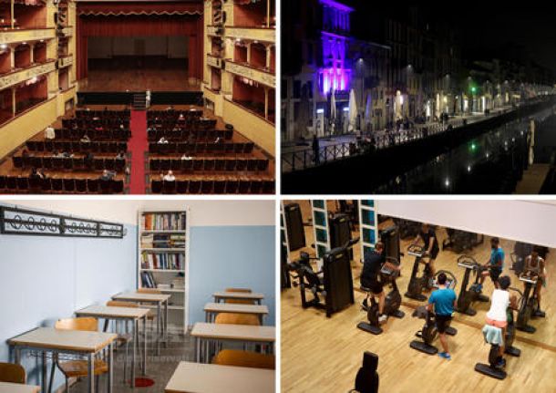 CHIUSI I CENTRI CULTURALI, STOP A TUTTE LE FIERE – Niente palestre, piscine, terme, discoteche, sale giochi, sale scommesse, sale bingo, casinò. Sono sospesi gli spettacoli aperti al pubblico in sale teatrali, sale da concerto, cinema e in altri spazi anche all’aperto. Serrande abbassate anche per i centri sociali e ricreativi. Chiudono anche i parchi tematici, restano aperti invece i musei, parchi e le aree giochi per i bambini ma resta obbligatorio il distanziamento. Non si potranno tenere sagre e fiere, neanche quelle a livello nazionale e internazionale che erano state salvate dal precedente dpcm.