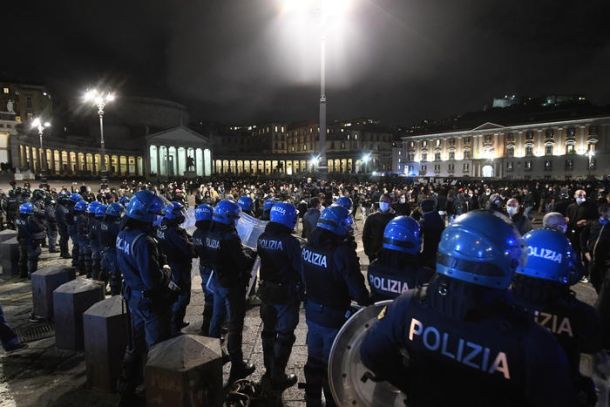 ROMA – Monta la protesta in tutta Italia dopo l’ultima stretta legata al Dpcm in vigore da oggi che prevede, tra l’altro la chiusura dei locali dopo le 18 e lo stop a palestre e attività sportive. Sale l’allerta del Viminale. Massima attenzione, necessità di disinnescare sul nascere ogni situazione di possibile rischio, massima fermezza nei confronti dei violenti. Al Viminale sale l’allerta per le tensioni sociali che potrebbero esplodere nel paese dopo il nuovo Dpcm del governo che ha rintrodotto una serie di restrizioni. Le manifestazioni dei giorni scorsi a Napoli, Roma e Torino, viene sottolineato, sono un campanello d’allarme anche se si è trattato di situazioni ben connotate: chi si è reso protagonista degli scontri con le forze di polizia, in sostanza, non aveva nulla a che vedere con le categorie che in qualche modo sono state più colpite dalla crisi di questi mesi ma con ambienti che avevano il preciso scopo di provocare disordini: ultras, estremisti di destra, centri sociali, soggetti che vivono di espedienti e piccoli reati utilizzati come manovalanza dalla criminalità organizzata.