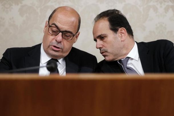 Nicola Zingaretti (S), segretario del Partito Democratico, e Andrea Marcucci (D), capogruppo al Senato del Partito Democratico,ANSA/RICCARDO ANTIMIANI