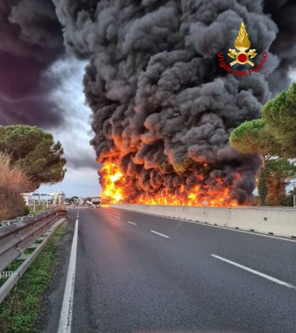 Fi – Pi – Li: incendio autocisterna domato da vigili del fuoco (foto e video)