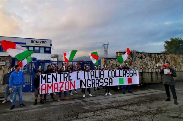 FIRENZE, – Denunciate dalla Digos di Firenze 11 persone che ieri hanno partecipato a una protesta contro Amazon organizzata dal movimento delle Mascherine tricolori a Calenzano (Firenze) davanti a un centro di smistamento del colosso dell’e-commerce. L’accusa è di manifestazione non preavvisata, inoltre per tutti sono scattate multe per violazione delle norme anti Covid essendo usciti dal comune di residenza senza valido motivo e aver creato un assembramento.