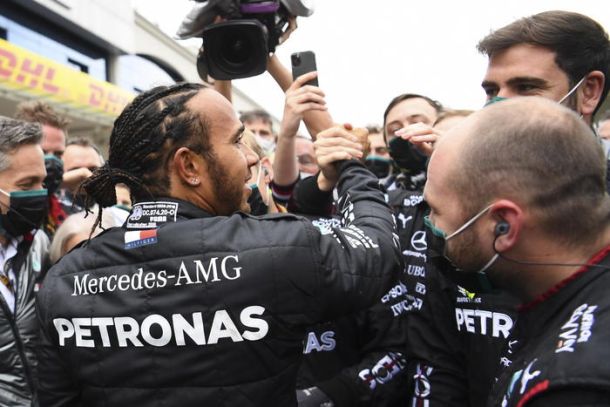 Ragazzi è incredibile, Hamilton taglia il traguardo del Gp di Turchia, e scoppia in lacrime nell’abitacolo della sua Mercedes mentre parla con il suo team principal Toto Wolff. Poi ai piedi del podio Hamilton senza mascherina si prende l’abbraccio di tutto il team facendo partire la festa per la sua vittoria e il settimo titolo. Il commento del campione: «Mi mancano le parole, ringrazio la mia famiglia e il team, sono andato ben oltre i miei sogni. Sperso i bambini prendano ispirazione da quanto ho fatto».
