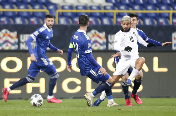 mancare alcuni titolari, in primis Dzeko, per Covid. Senza cronisti in tribuna (un fatto storico), la partita di Sarajevo è cominciata in un clima gelido (sei gradi). Il possesso palla degli azzurri è stato subitaneo, ma il primo tiro lo ha fatto il milanista Krunic (deviato), poi una bella azione di Belotti è sfociata in un tiro fuori da ottima posizione.