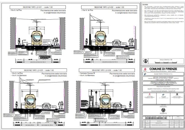Le tavole del progetto relative alla zona La Pira – Lamarmora e al Viale Lavagnini indicano una rilevante contrazione dello spazio per la circolazione privata, come avviene ormai per tutte le tratte interessate dal nuovo servizio tramviario. In Viale Lavagnini due corsie sono occupate dalla tramvia, mentre quattro restano a disposizione del traffico normale, in Via Lamarmora resta solo una corsia per il traffico, ma è già zona a traffico limitato.