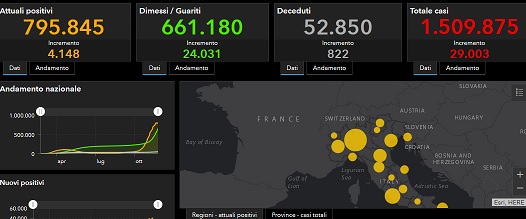 ROMA – Il bollettino giornaliero del 26 novembre sulla pandemia in Italia, redatto dal ministero della salute e pubblicato dalla protezione civile ci dice che i morti sono ancora 822 (totale 52.850), i nuovi contagi  29.033 e i ricoverati in terapia intensiva 3.846.