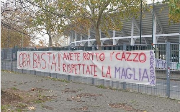 FIRENZE – «Ora basta! Avete rotto i’ ca…Rispettate la maglia». E’ questo il testo di uno striscione firmato dal viola club ‘Marasma’ e appeso di fronte a uno degli ingressi del centro sportivo Davide Astori di Firenze, in zona stadio Franchi. Si surriscalda il clima nella tifoseria organizzata viola che non ha digerito le ultime sconfitte rimediate in campionato dalla formazione guidata da Cesare Prandelli, ora quart’ultima in classifica. Molti non hanno gradito neanche i due giorni di riposo concessi dopo la sconfitta in casa del Milan. Gli allenamenti in vista del posticipo di lunedì contro il Genoa, infatti, riprenderanno domani, mercoledì 2 dicembre.
