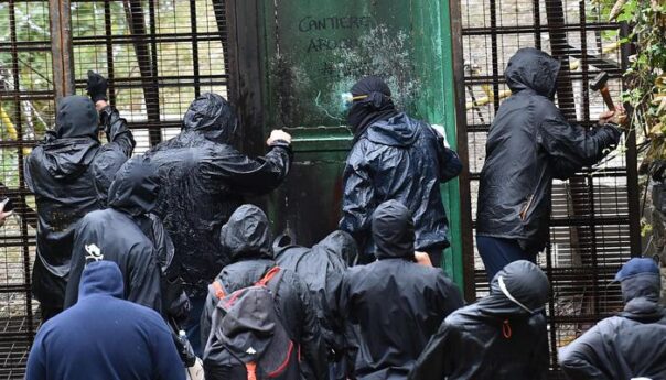 Il gruppo fa parte delle centinaia di attivisti in cammino sui sentieri di montagna dopo essere partiti dal raduno al campo sportivo di Giaglione (Torino) Le forze dell’ordine hanno risposto con lanci di lacrimogeni. Proseguono gli attacchi di attivisti No Tav, sparsi nei boschi della Valle di Susa, attorno al cantiere di Chiomonte della Torino-Lione. Secondo fonti investigative circa 250 incappucciati si sono divisi in vari gruppi nei sentieri e nei boschi della Clarea. Le forze dell’ordine sono bersagliare da tre diversi punti: due dall’alto e uno dal basso, sempre con lanci di petardi, bombe carta e sassi. In risposta sono stati lanciati gas lacrimogeni. Il tentativo dell’area oltranzista dei No Tav è di superare, aggirandoli, gli schieramenti di polizia e carabinieri per poi raggiungere così le recinzioni del cantiere di Chiomonte. Si registrano due feriti tra le forze dell’ordine durante i disordini scoppiati in Val di Susa dove circa 250 No Tav hanno attaccato polizia, carabinieri e guardia di finanza su tre diversi punti per raggiungere il cantiere della Torino-Lione di Chiomonte. Si tratta di un agente di polizia e di un militare della guardia di finanza. I gruppi di incappucciati hanno accerchiato i reparti dall’alto e dal basso attaccandoli con fitto lancio di bombe carta, petardi e sassi. Le forze dell’ordine hanno risposto con lanci di lacrimogeni. I disordini stanno continuando tra i boschi attorno al cantiere.