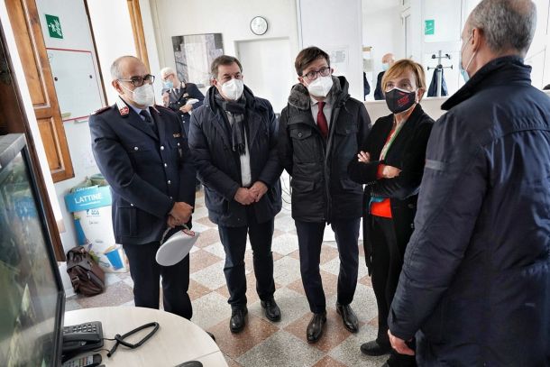 La visita è stata l’occasione per ‘vedere da vicino’ il sistema delle telecamere anti-assembramento sperimentato in città nel fine settimana appena trascorso e per salutare e fare gli auguri al personale in servizio in vista delle imminenti festività natalizie.