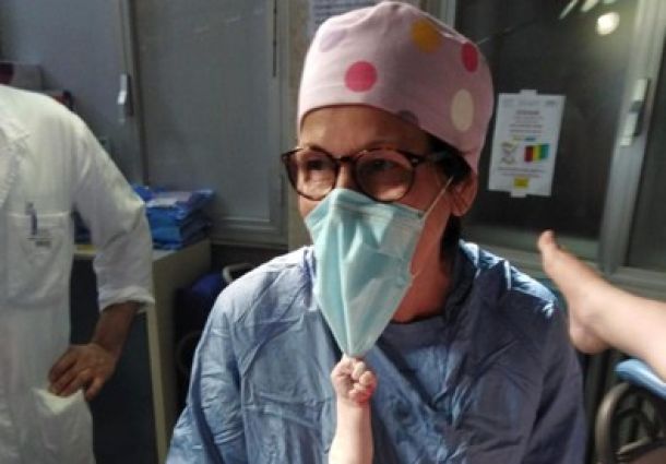 Neonato strappa la mascherina all’ostetrica. E’ la foto di Natale 2020
