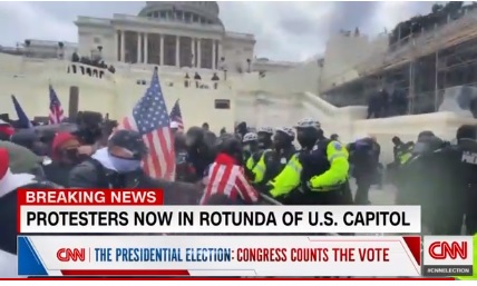 Siamo sotto assedio. Migliaia di persone assediano il Congresso degli Stati Uniti, chiamato a certificare la vittoria di Joe Biden alle elezioni Usa 2020, e dall’interno di un edificio del complesso di Capitol Hill i giornalisti twittano immagini della situazione ad altissima tensione. Gruppi di manifestanti, dopo aver partecipato alla manifestazione a cui è intervenuto Donald Trump, hanno sfondato i cordoni di sicurezza e sono entrati all’interno del complesso. Alcuni video mostrano gruppi di manifestanti che si muovono all’interno degli edifici e avanzano davanti agli agenti. In più di unfilmato si vede una porta colpita ripetutamente con violenza da persone che cercano di entrare, mentre all’esterno si sente il coro ‘Usa, Usa’.