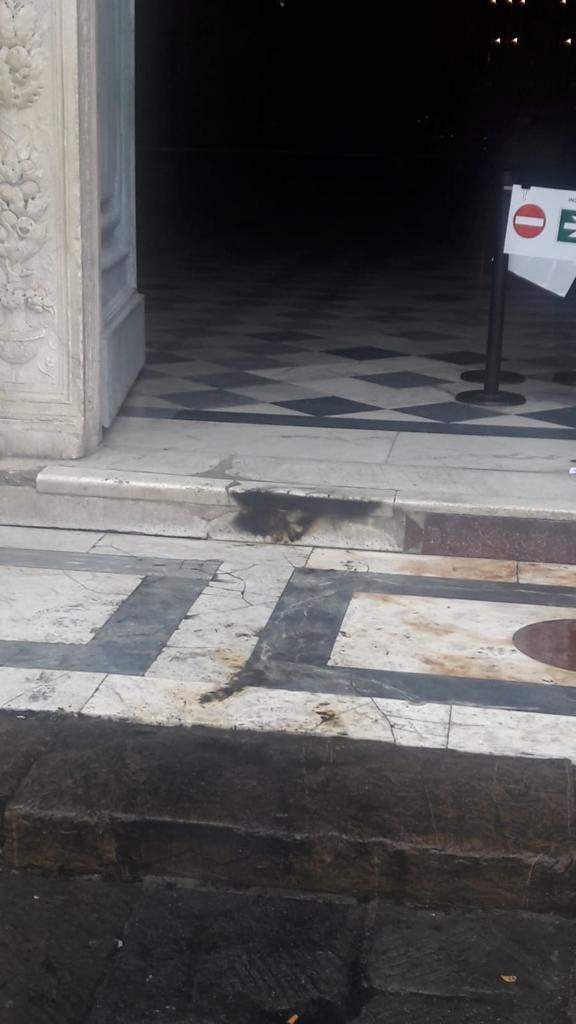 Basilica di Santa Maria Novella: appiccato fuoco al portone principale, annerito anche l’arco trionfale