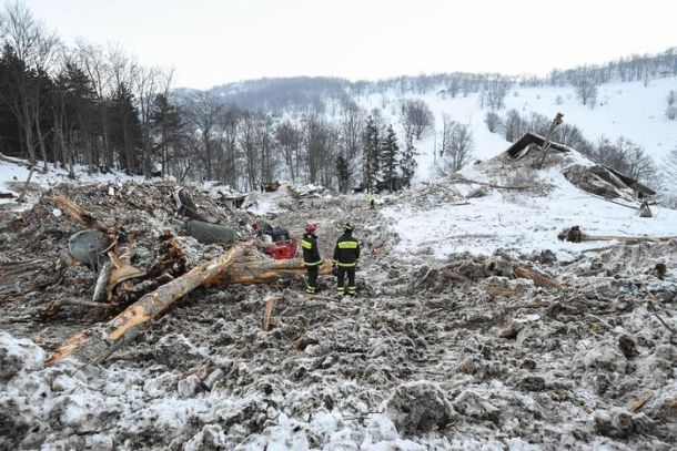 I soccorritori dovevano raggiungere un’area, quella su cui sorgeva il resort, che si trova a 1.200 metri di altitudine. Alle 19 le avanguardie arrivarono in contrada Cupoli a 11 km da Rigopiano. Ma la neve raggiungeva gia’ i due metri e i telefoni non prendevano. Alle 22 la colonna dei mezzi imbocco’ l’ultimo tratto di strada: mancavano 9 km all’hotel ma l’ascesa dovette fermarsi. Era ormai mezzanotte quando quattro uomini del Soccorso alpino e della Guardia di Finanza decisero di procedere con gli sci con le pelli di foca: dopo quattro ore estenuanti, arrivarono all’hotel e salvarono i due superstiti che avevano lanciato l’allarme. Intorno alle 6.30, arrivarono gli elicotteri per portarli a valle e intanto inizio’ la ricerca dei dispersi. La prima vittima venne estratta alle 9.30. Solo a mezzogiorno la colonna dei mezzi dei soccorsi arrivo’ a poche centinaia di metri dall’albergo e dopo 20 ore, gli uomini dei soccorsi, fatto l’ultimo tratto a piedi, raggiunsero il luogo del disastro.