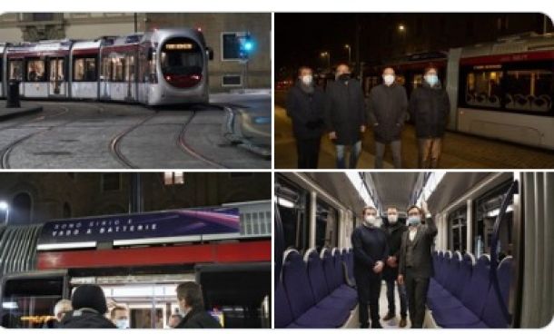 FIRENZE – Ha abbassato il pantografo viaggiando a batteria nel tratto tra la fermata Stazione-Alamanni e Fortezza a Firenze. Ieri sera il tram Sirio, veicolo già utilizzato sulle linee T1 e T2, modificato da Hitachi Rail per viaggiare senza l’alimentazione da catenaria ha effettuato la prima prova sul campo dopo i numerosi test in laboratorio e nel deposito di Gest. Un momento a lungo atteso al quale non sono voluti mancare il sindaco Dario Nardella con il collega di Scandicci Sandro Fallani, l’assessore alla Mobilità Stefano Giorgetti, l’Ad di Gest Jean-Luc Laugaa e l’Head of Sales and Projects Italy di Hitachi Rail Andrea Pepi.