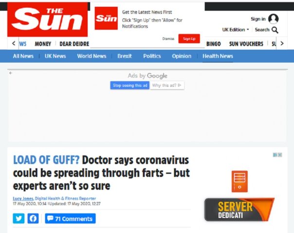 Londra: il giornale the Sun lancia l’allarme, il virus si trasmette anche con le flatulenze