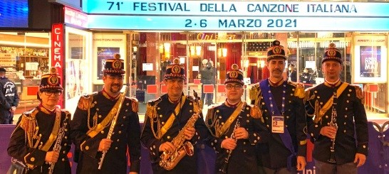 La Banda musicale, diretta dal maestro Maurizio Billi, ha suonato ieri sera durante la prima puntata della manifestazione canora e ha eseguito un medley musicale, omaggio ai musicisti Astor Piazzolla, di cui ricorrono i 100 anni dalla nascita, e Carlos Gardel. Con i nostri musicisti sono saliti sul palco il sassofonista Stefano Di Battista e la violinista Olga Zakharova».