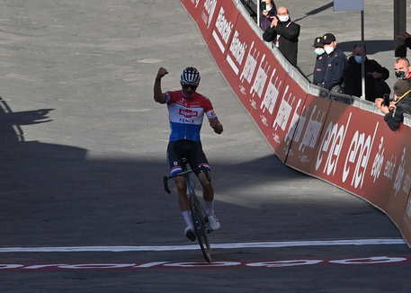 L’olandese, sul tracciato lungo 184 chilometri, ha preceduto sul traguardo di piazza del Campo, a Siena, il francese Julian Alaphilippe, staccato di 5″, e il colombiano Egan Bernal, terzo a 20″. Al quarto posto il belga Wout Van Aert, favorito assoluto, che ha accusato un distacco di 51″; a seguire il britannico Thomas Pidcock (5/o), l’austriaco Michael Gogl (6/o) e lo sloveno Matej Pogacar, vincitore del Tour de France dell’anno scorso, che si è piazzato al settimo posto.