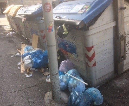 Firenze: cassonetti strapieni in Piazza Conti, la gente protesta