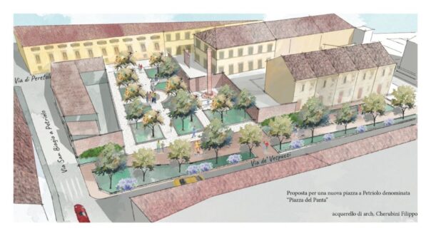 Il progetto, presentato e donato all’Amministrazione Comunale dagli architetti Marco e Filippo Cherubini, cittadini e professionisti da sempre attivi ed attenti alla riqualificazione dei Borghi Storici Minori Fiorentini, riguarda, come si legge nel documento, «la proposta progettuale, articolata ma rispettosa dei valori storico architettonici del luogo, mira ad una sostanziale riqualificazione dell’area introducendo un nuovo giardino pubblico nei Borghi Storici Minori (da sempre bisognosi di nuovi spazi verdi). La nascita e la storia di Piazza Del Panta risale a quando i Borghi Storici Minori afferivano all’allora Comune di Brozzi.