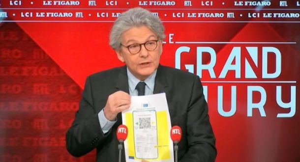 Coronavirus, Ue: Commissario Breton mostra passaporto sanitario. Immunità gregge a luglio