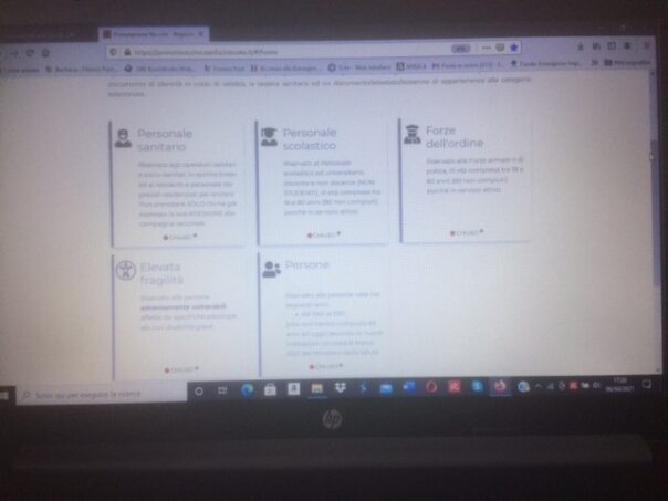 Oggi abbiamo controllato. Poco dopo le 17, come appare dalla foto scattata sul computer di redazione collegato all’apposito sito regionale, le prenotazioni per le cinque categorie indicate segnalavano un bel CHIUSO. A scanso di fake news.