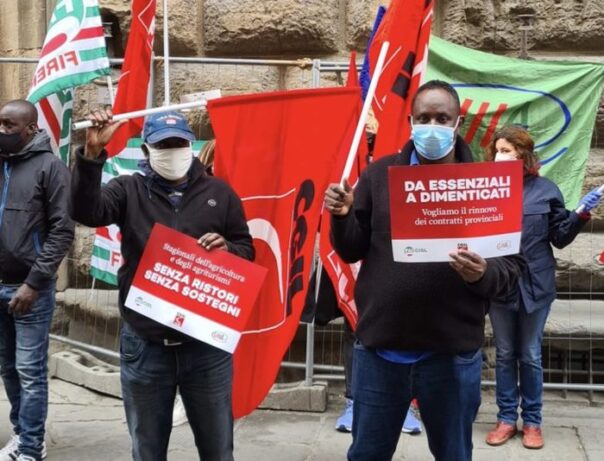 FIRENZE – Lavoratori agricoli in protesta davanti alle prefetture di Firenze, Siena, Grosseto e Arezzo per chiedere sostegni economici al comparto e il rinnovo dei contratti provinciali agricoli. La mobilitazione, organizzata dai sindacati dei lavoratori agricoli Flai-Cgil, Fai-Cisl e Uila-Uil, denuncia l’assenza di ristori per i lavoratori agricoli all’interno del decreto Sostegni. I lavoratori stagionali agricoli – spiegano i sindacati – sono stati essenziali in tutte le fasi della pandemia, ma sono stati dimenticati anche dal governo Draghi, discriminati ed esclusi dal diritto di ricevere ristori adeguati. Questi lavoratori sono essenziali sempre – aggiungono – non solo quando è stato chiesto loro di continuare a lavorare, garantendo per mesi cibo sulle tavole di tutti. Vanno loro garantiti diritti contrattuali, un reddito dignitoso e sostegni adeguati come ad altre categorie di lavoratori. La mobilitazione chiede inoltre una veloce conclusione del percorso di rinnovo dei contratti provinciali agricoli, scaduti da oltre un anno