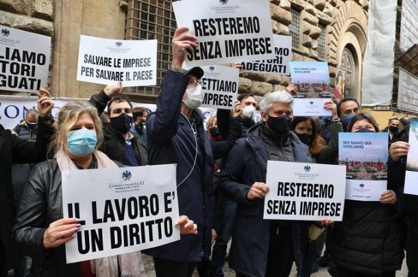 Insieme a Firenze erano collegate 21 piazze italiane collegate con piazza San Silvestro, a Roma, cuore dell’assemblea straordinaria della Fipe-Confcommercio, gli esercenti lanciano un messaggio chiaro al governo: serve un piano preciso di riaperture. Per la prima volta in piazza è anche il presidente di Confcommercio, Carlo Sangalli, che ascolta e dal palco manda un messaggio al governo: dice di non aver ancora visto dal governo il promesso cambio di passo, parla di vaccini e sostegni. Una presa di posizione decisa che strappa al ministro dello Sviluppo Giancarlo Giorgetti la notizia che la prossima settimana il Cdm parlerà di riaperture. Si riparte, forse, a maggio.