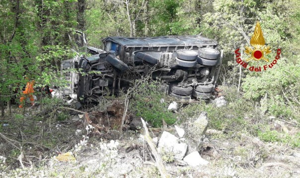 STAZZEMA (LUCCA) – I vigili del fuoco del Comando di Lucca e dei distaccamenti di Pietrasanta e Viareggio,  sono intervenuti a partire dalle ore 14.00 di oggi 26 aprile 2021, a Stazzema, sulla SP 10 tra Retignano e Levigliani, per un incidente stradale. Un camion carico di pietre di cava è uscito fuori strada finendo in un dirupo per circa 40 metri dal livello stradale.  Il conducente è stato preso in carico dal personale sanitario del 118, intervenuto anche con Pegaso che ha provveduto al trasferimento del ferito.