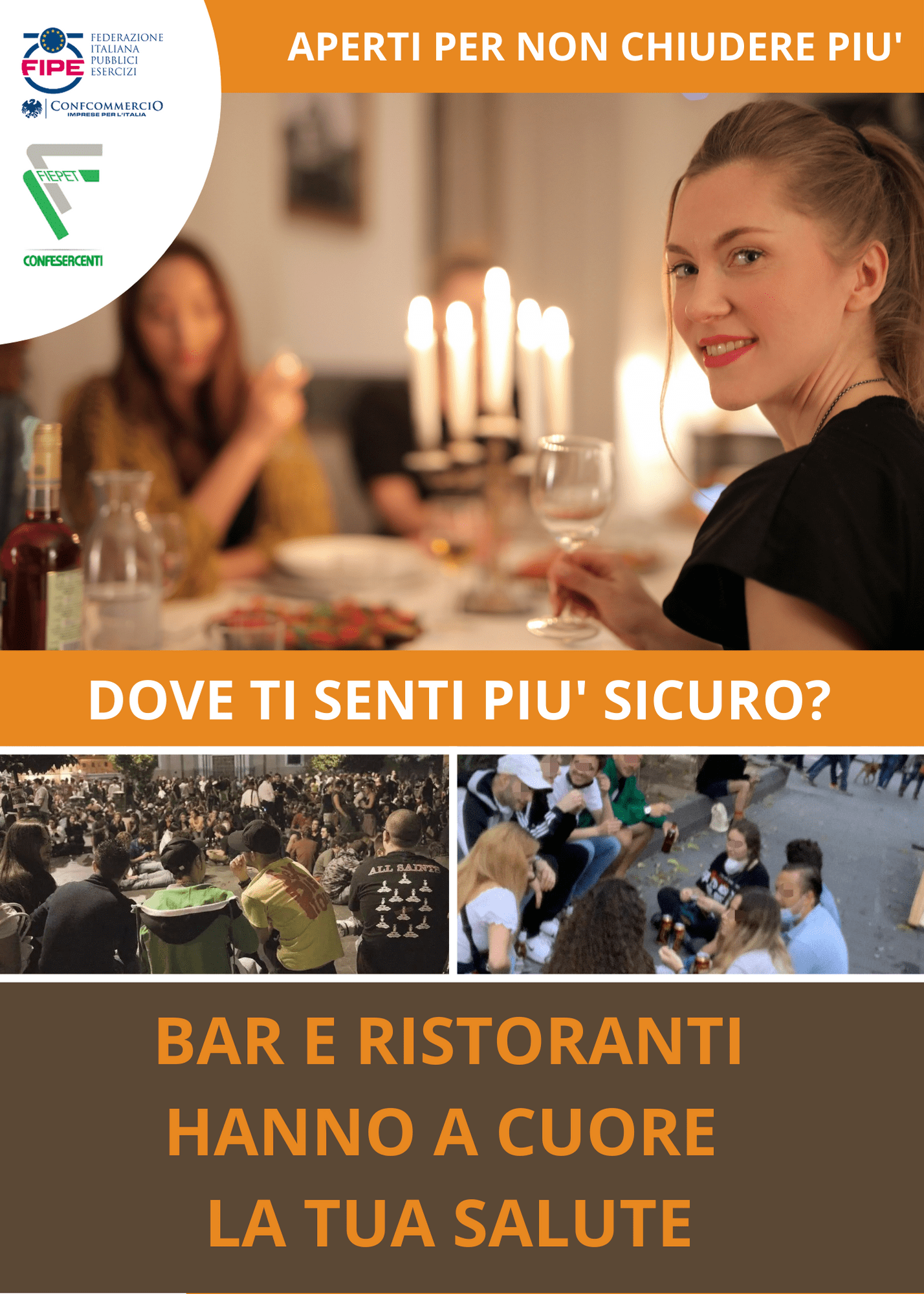 Per accompagnare il pressing sindacale, arriva quindi la campagna promozionale rivolta ai clienti, che prevede il coinvolgimento di tutte le attività di somministrazione con l’obiettivo di evitare un nuovo lockdown, dimostrando che non sono certo bar e ristoranti i luoghi di maggior diffusione dei contagi.