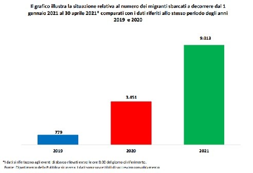 «Tutte le statistiche storiche evidenziano un aumento degli sbarchi nella stagione estiva. Ora, i numeri assoluti relativi ai primi mesi del 2021 sono superiori a quelli del 2020. Lo sono anche perché la crisi sociale ed economica innescata dal Covid-19 ha colpito in modo duro anche il continente africano. In ogni caso, la situazione va gestita tenendo conto dei picchi stagionali e della pandemia. Da tempo, in previsione degli incrementi degli sbarchi in estate, stiamo insistendo con tutti gli interlocutori europei, coinvolti come noi nella complessa trattativa sul nuovo Patto Immigrazione e Asilo proposto dalla Commissione», sottolinea Lamorgese, che spiega di avere chiesto una tempestiva attivazione di un meccanismo d’emergenza finalizzato al ricollocamento nei Paesi dell’Unione disponibili dei migranti salvati in mare durante eventi di soccorso e ricerca.