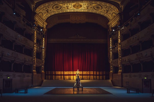 Fondazione Teatro della Toscana, L’Oltrarno – Scuola di formazione del mestiere dell’attore: Lorenzo Antolini, Greta Bendinelli, Marco Bossi, Antonio Cocuzza, Jacopo Dragonetti, Arianna Maria Garcea, Giacomo Gava, Yeda Kim, Nadia Najim, Viola Picchi Marchi, Federico Poggetti, Francesco Providenti, Maria Giulia Toscano presentano «La donna volubile» di Carlo Goldoni, scene Carlo De Marino, direttrice di scena Federica Elisa Francolini, costumi e maschere Elena Bianchini, assistente costumi e maschere Eleonora Sgherri, sarte Silvia Anderson, Anna Catalina Rodriguez, costruzione, macchineria Duccio Bonechi, Sandro Lo Bue, Francesco Pangaro, luci Filippo Manzini, fonico Lorenzo Bernini, gioielli realizzati da Paolo Penko Bottega Orafa, voice training Susan Main, movement training Sinead O’Keeffe, regia Marco Giorgetti, aiuto regia Raffaello Gaggio. Prima Nazionale