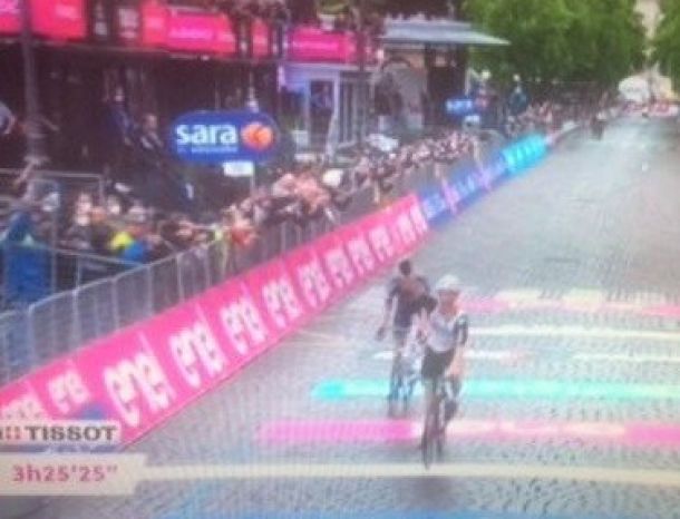 GORIZIA – Tappa caratterizzata dal maltempo e da una maxicaduta che ha portato al ritiro di alcuni atleti. Una fuga di quindici atleti ha preso il largo, a 20 chilometri dal traguardo  quando Victor Campenaerts, Oscar Riesebeek e Albert Torres hanno attaccato sorprendendo gli altri battistrada. Sull’ultimo GPM di giornata, Torres si è staccato dagli altri due. Riesebeek e Campenaerts, si sono giocati il successo allo sprint e il secondo ha avuto la meglio. La maxi caduta ha portato al ritiro di Emanuel Buchmann e Ruben Guerreiro. Bernal conserva la maglia rosa