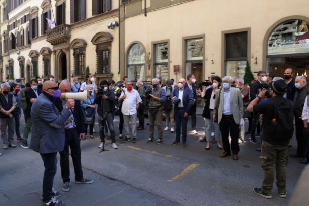 Giornalisti toscani ricevuti dal prefetto, manifestazione davanti a Palazzo medici Riccardi