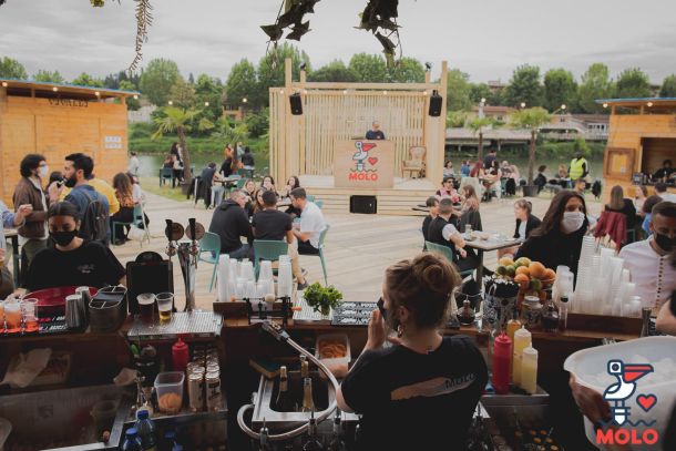 Dalla scelta dei materiali di allestimento alla totale ecosostenibilità dei prodotti monouso, il Molo posa la sua occupazione sul Lungarno con un approccio integrativo al contesto floristico e ambientale; è promotore della riqualificazione dell’area occupata e di iniziative volte alla sensibilizzazione circa le buone pratiche da attuare. Come l’aperiplogging in compagnia di Nadia Fondelli, camminata veloce che fa bene al corpo, alla mente e all’ambiente, attività sportiva eco-friendly che consiste nella raccolta dei rifiuti da terra mentre si corre e si cammina per i parchi e le vie della città. Ogni “plogger” è equipaggiato da abbigliamento sportivo e scarpe tecniche, guanti monouso di lattice o giardinaggio, sacchetti in cui mettere i rifiuti. Secondo un report dell’App “Lifesum”, mezz’ora di plogging farebbe bruciare più calorie rispetto a mezz’ora di corsa o camminata lungo lo stesso tracciato. “Aperiplogging” è un evento continuativo, ogni 15 giorni, mercoledì 9 e mercoledì 23 gli appuntamenti di giugno, per un’ora di plogging al tramonto sull’Arno con aperitivo finale. Tra le attività dedicate all’ambiente, anche “Un drink per i tuoi mozziconi”, una bevuta offerta in cambio di operazioni di pulizia spiagge, e “Straw no more”, cannucce di carta e bicchieri in Mater-Bi e polpa di cellulosa. Le cannucce saranno solo di carta e bicchieri in Mater-Bi e polpa di cellulosa per i drink, mentre gli allestimenti sono realizzati in materiali sostenibili.