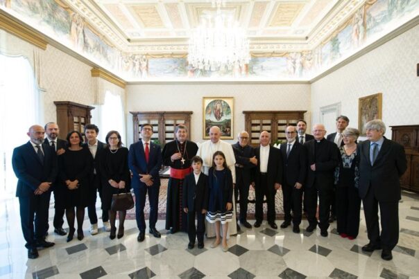 In occasione dell’udienza concessa da Papa Francesco il 4 giugno a una delegazione fiorentina, guidata dall’Arcivescovo Cardinale Giuseppe Betori, la delegazione dell’Opera Medicea Laurenziana e della Parrocchia di San Lorenzo, formata da Mons. Marco Domenico Viola, Antonio Lovascio, Monica Bietti e Vincenzo Vaccaro, ha offerto al Santo Padre un modellino che riproduce il poliedro che Michelangelo pose alla sommità della cupola della Sagrestia Nuova, la Cappella che raccoglie le spoglie di alcuni esponenti della Casa Medici. Il dono ha voluto rendere omaggio al ripetuto richiamo di Papa Francesco a questa forma geometrica come quella che meglio rappresenta la natura della Chiesa e della società.