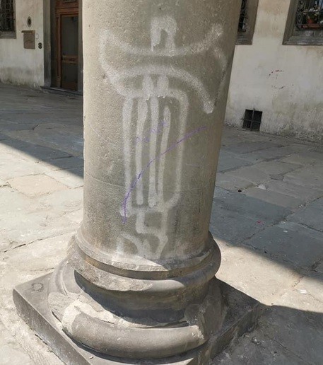 FIRENZE – Un fascio littorio con sotto la scritta Dux è stato vergato a Firenze su una colonna dello storico loggiato di piazza Santissima Annunziata, nel centro della città. Disegnato con vernice bianca, è stato notato da vari passanti, tra questi anche Gianluca Lacoppola, membro della segreteria della Cgil fiorentina.